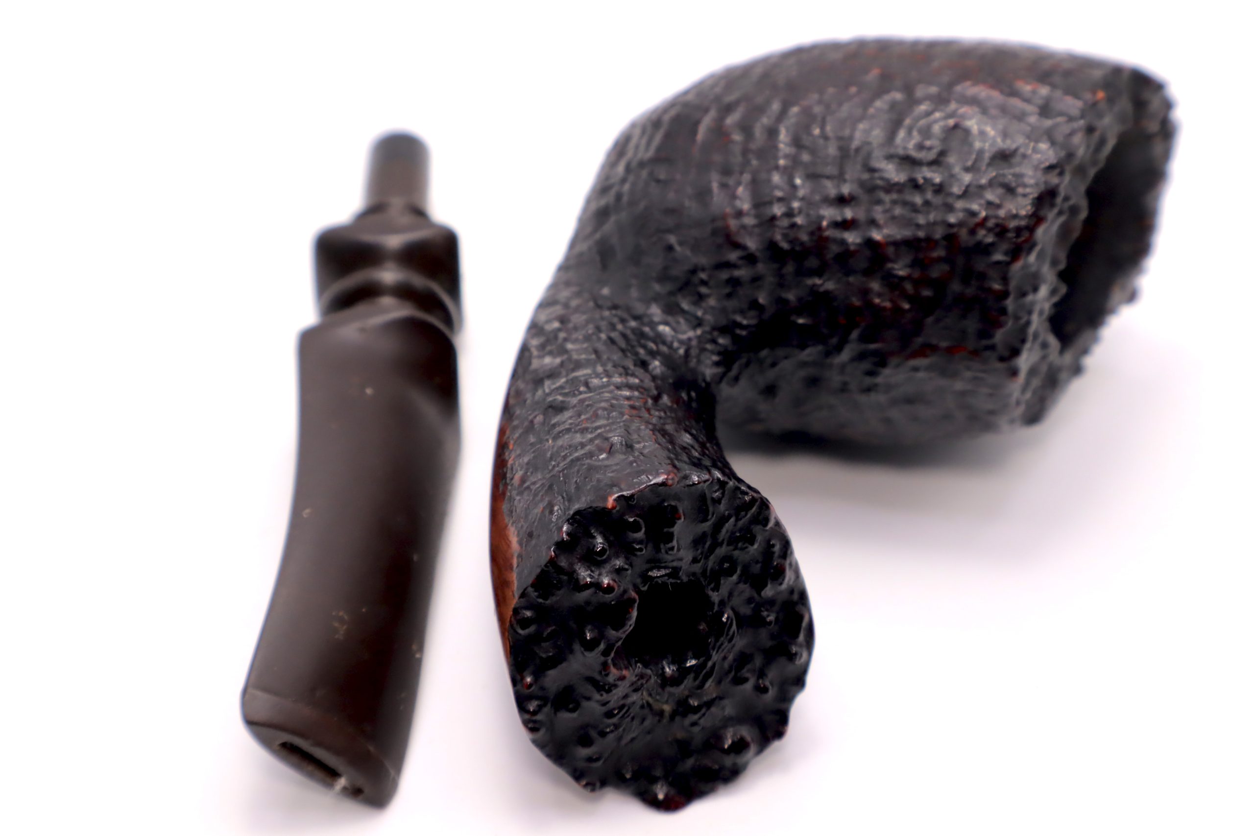This is an estate rustic Knute pipe of Denmark. It is a used pipe and may show signs of use. The pot and shank are in good condition with no breaks, cracks, or fractures. The stem has some light chatter near the lip area of the mouthpiece. A nice-looking pipe would make for a good afternoon smoke. If you have any questions about this pipe, feel free to ask. Happy Bidding!!!