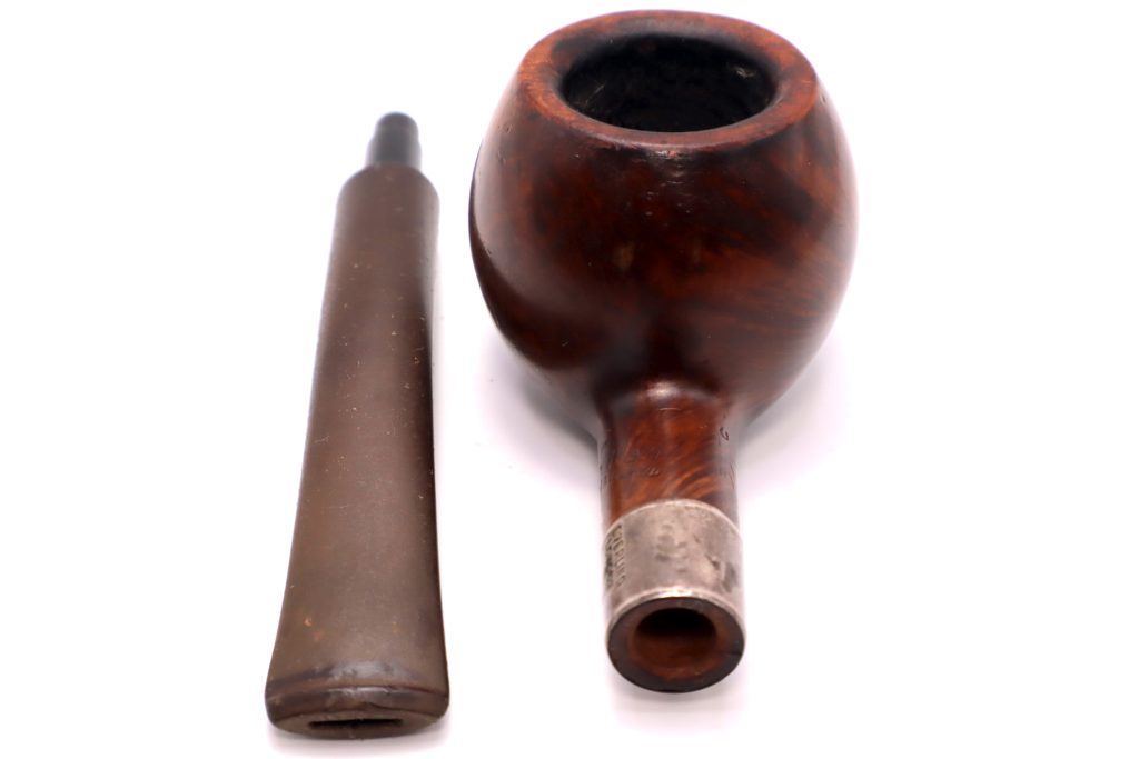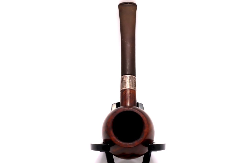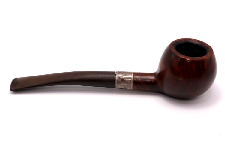 This is an estate London made sitter #337 Town Hall pipe by Comoy with a sterling band.  It is a used pipe and shows signs of use such as charring around the bowl’s rim, the pot is in good condition with no breaks, cracks or fractures.  The shank does have a crack but has been banded with a good tight fit between shank and stem.  The does have some light chatter near the lip area of the mouthpiece.  If you have any questions about this pipe, feel free to ask.  Happy Bidding!!!